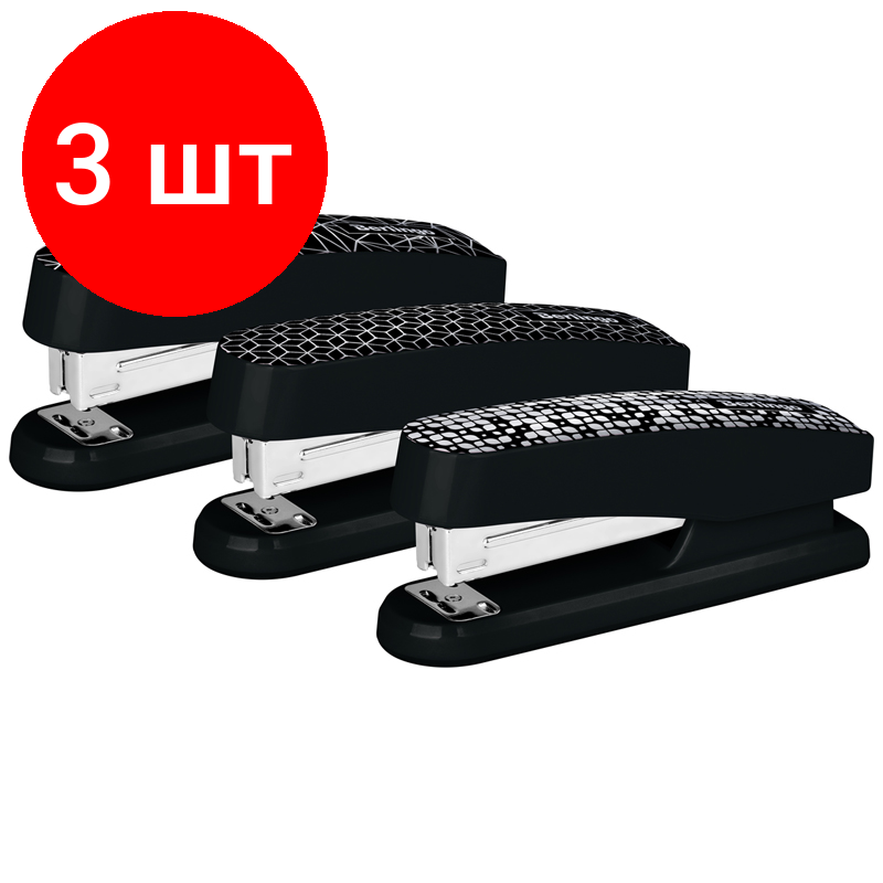10 цен на Комплект 3 шт, Степлер №24/6, 26/6 Berlingo "DoubleBlack", до 20л, пластиковый корпус, черный