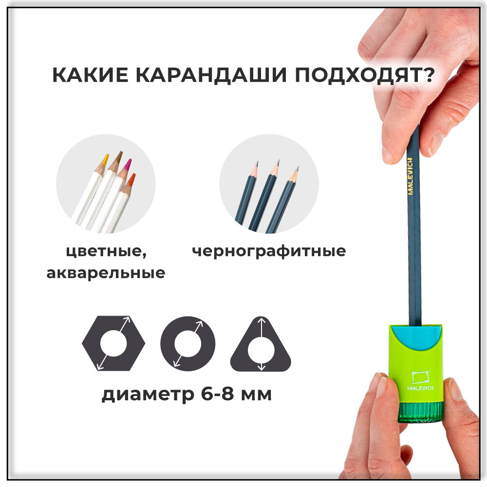 Отзывы на Точилка для карандашей Малевичъ с контейнером, набор 2 штуки, зеленый