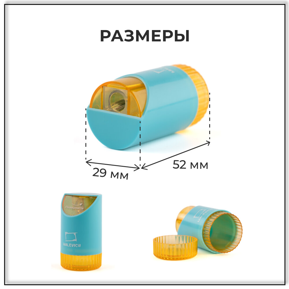 Точилка для карандашей с контейнером Малевичъ, голубая, набор 2 шт информация: