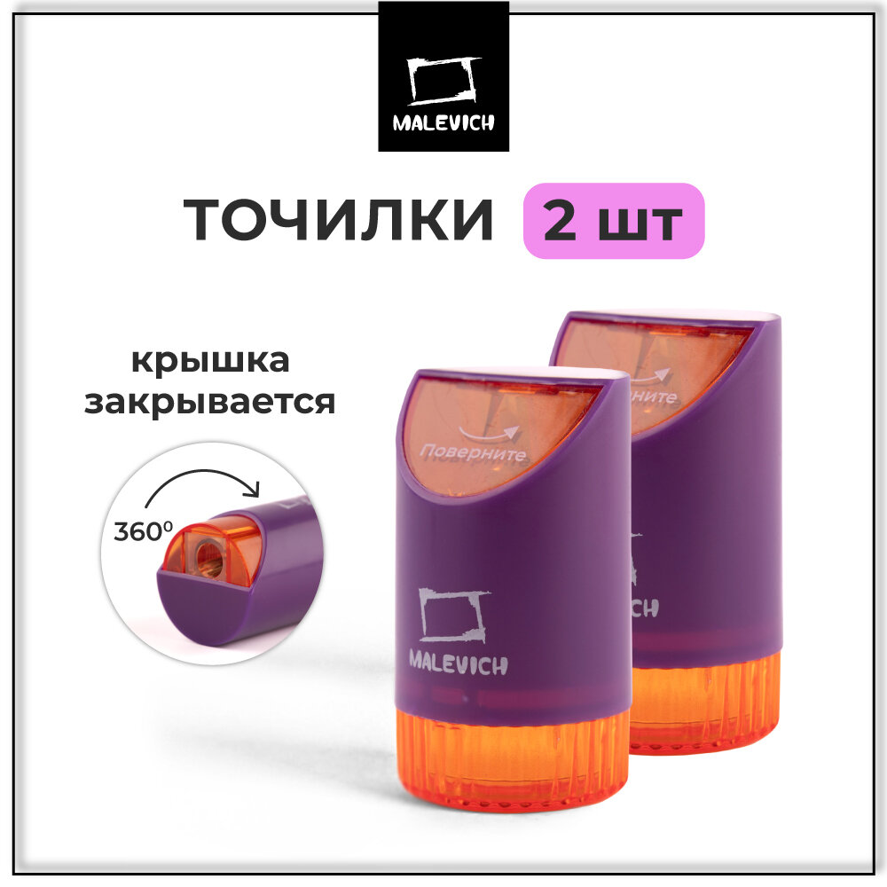 Точилка для карандашей с контейнером Малевичъ, фиолетовая, набор 2 шт информация: