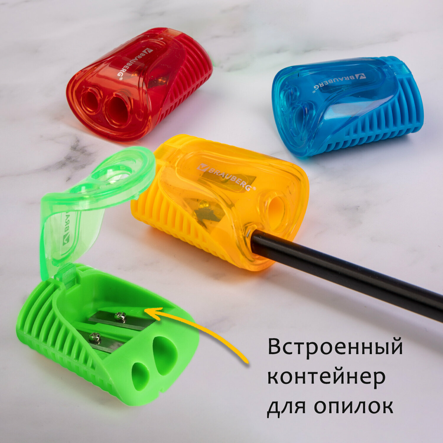 Отзывы на Точилка для карандашей 2 диаметров с контейнером BRAUBERG Cell Dual, комплект 4 шт, ассорти, 880444