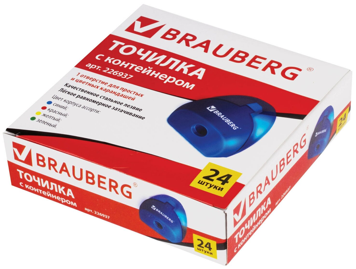 Точилка BRAUBERG BELL с контейнером, 1 штука, пластиковая, конусообразная, цвет корпуса ассорти, 226937 информация:
