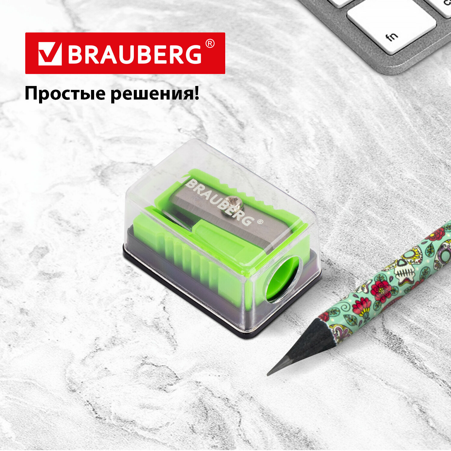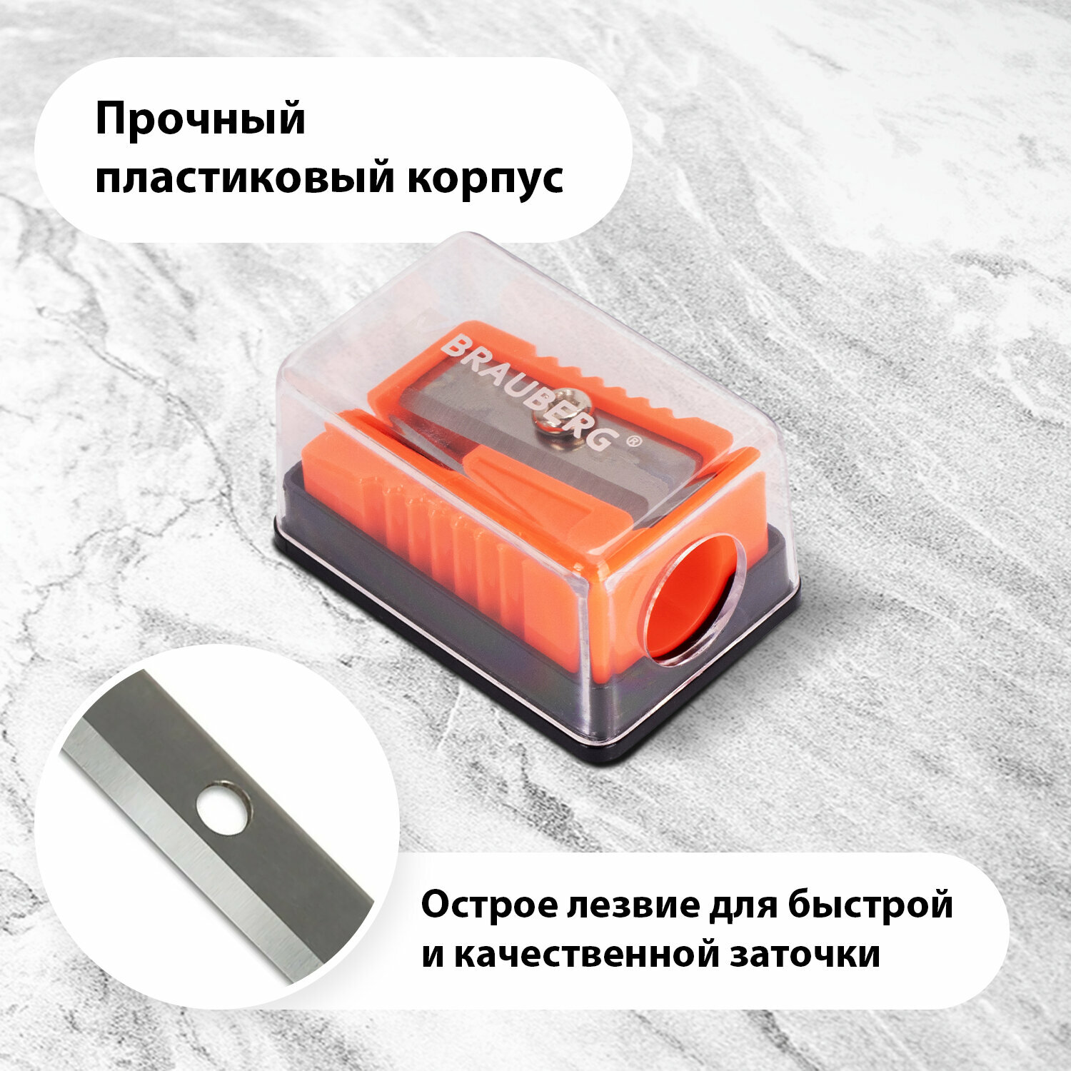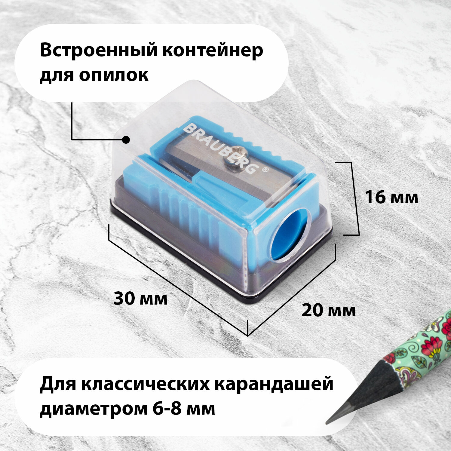 Точилка для чернографитных и цветных карандашей с контейнером Brauberg Assistant Mini, Комплект 4 штуки, корпус ассорти, 880441 информация: