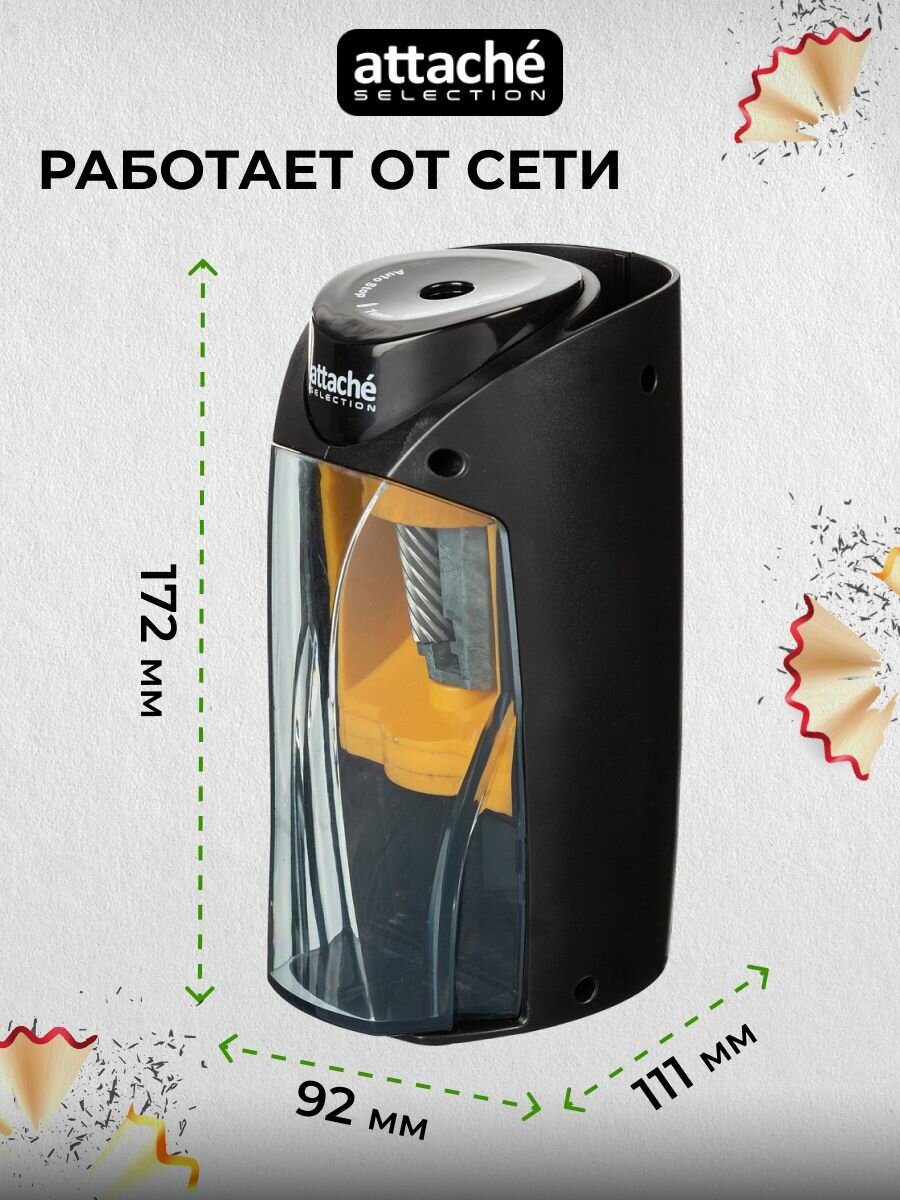 Точилка для карандашей электрическая Attache Selection, автоматическая от сети, с контейнером для стружки информация: