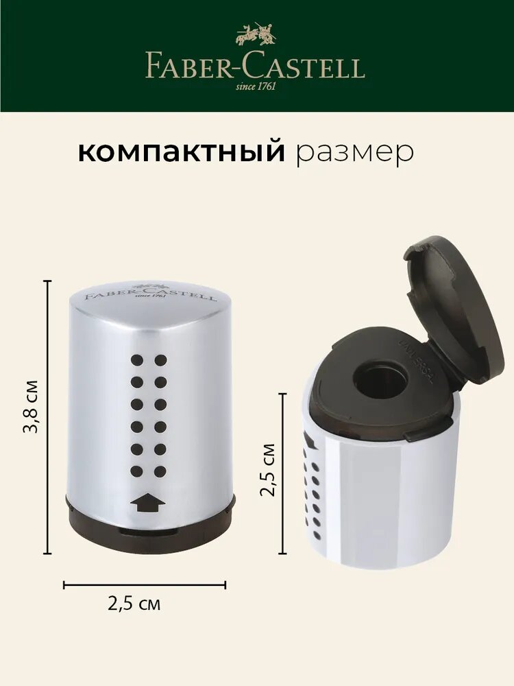 10 цен на Точилка пластиковая Faber-Castell "Grip 2001 Mini" 1 отверстие, контейнер, серебряная, 1шт, пакет