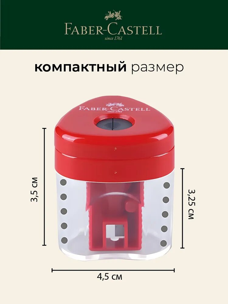 Отзывы на Точилка пластиковая со "шторкой" Faber-Castell "Grip Auto Mini" 1 отверстия, контейнер, ассорти, 1шт, пакет