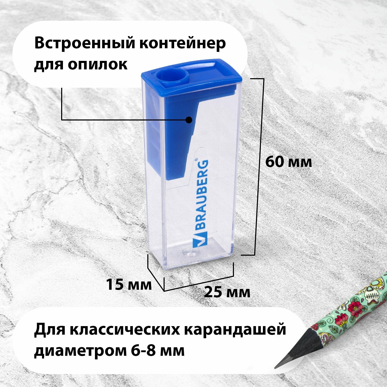 Точилка для чернографитных и цветных карандашей с контейнером Brauberg Assistant, Комплект 24 штуки, корпус ассорти, 880443 информация: