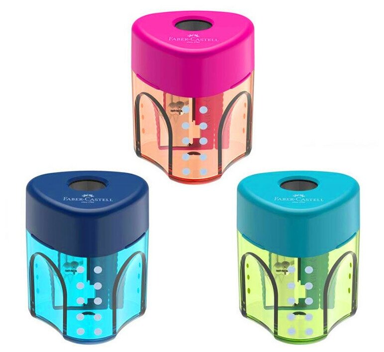 10 цен на Точилка пластиковая со "шторкой" Faber-Castell "Grip Auto Mini" 1 отверстие, контейнер, розовая/бирюзовая/синяя 306096