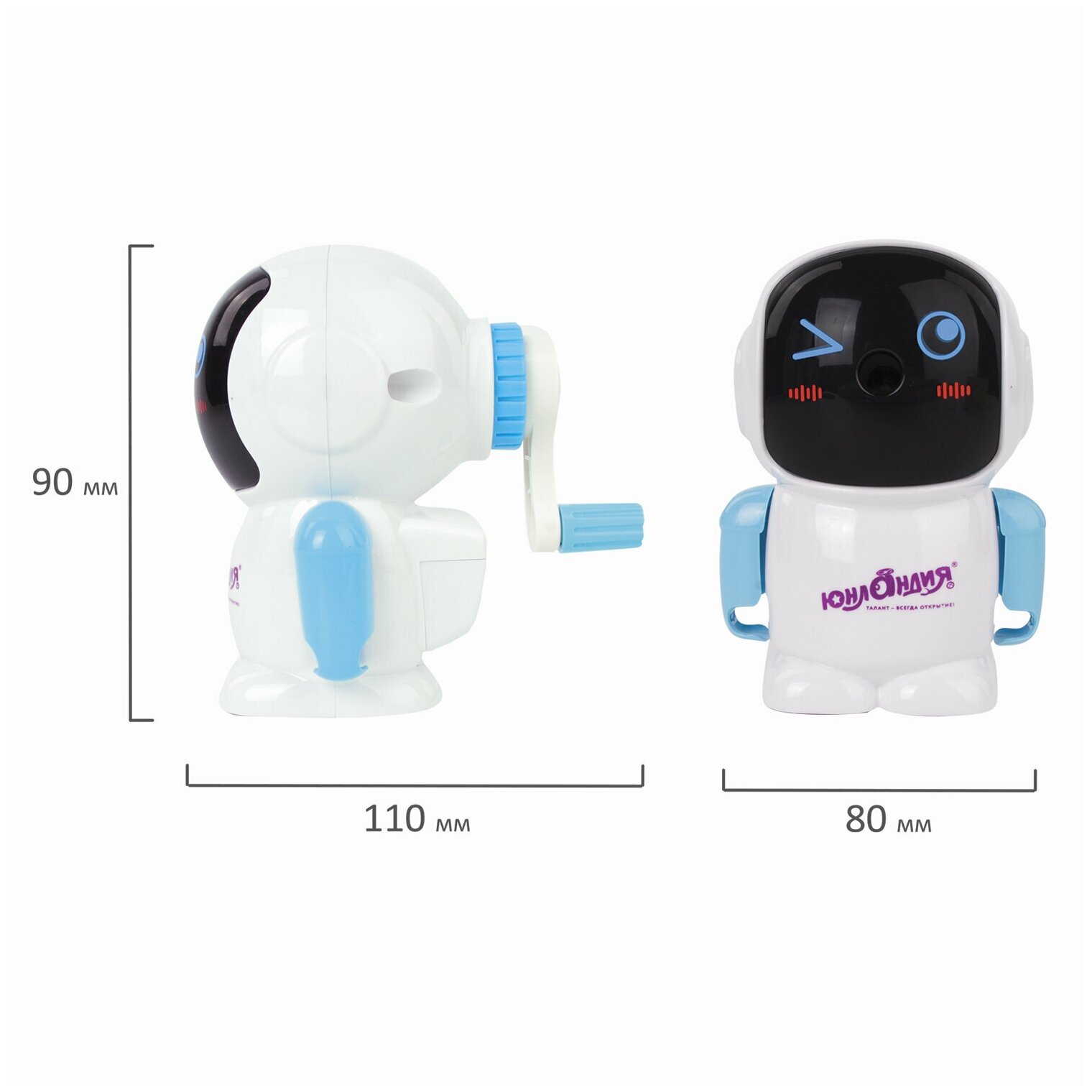 Точилка механическая настольная для карандашей с контейнером для стружки Юнландия Юнландик в Космосе, корпус белый с голубым, 228486 информация: