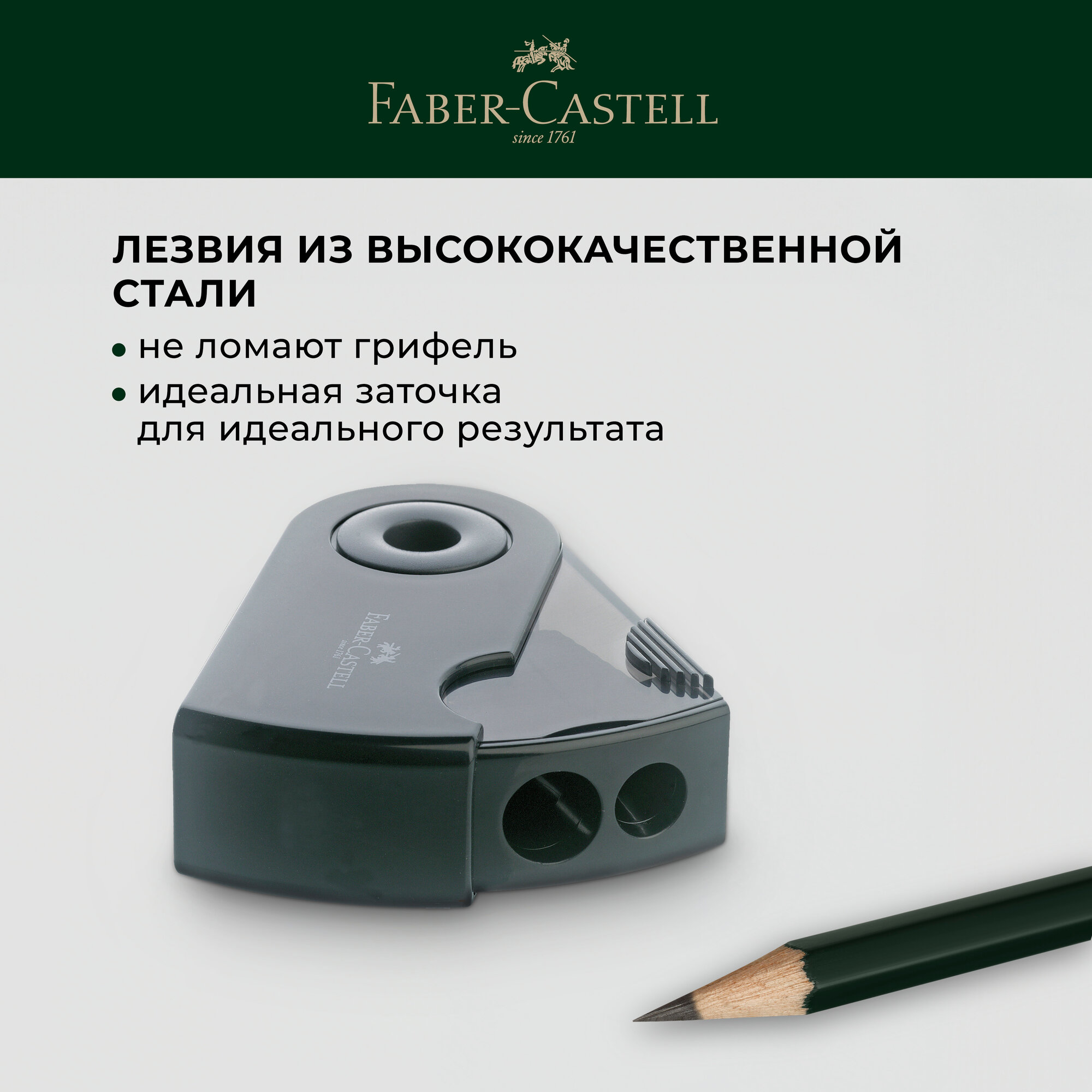 Точилка пластиковая Faber-Castell "Sleeve", 2 отверстия, контейнер, черная информация: