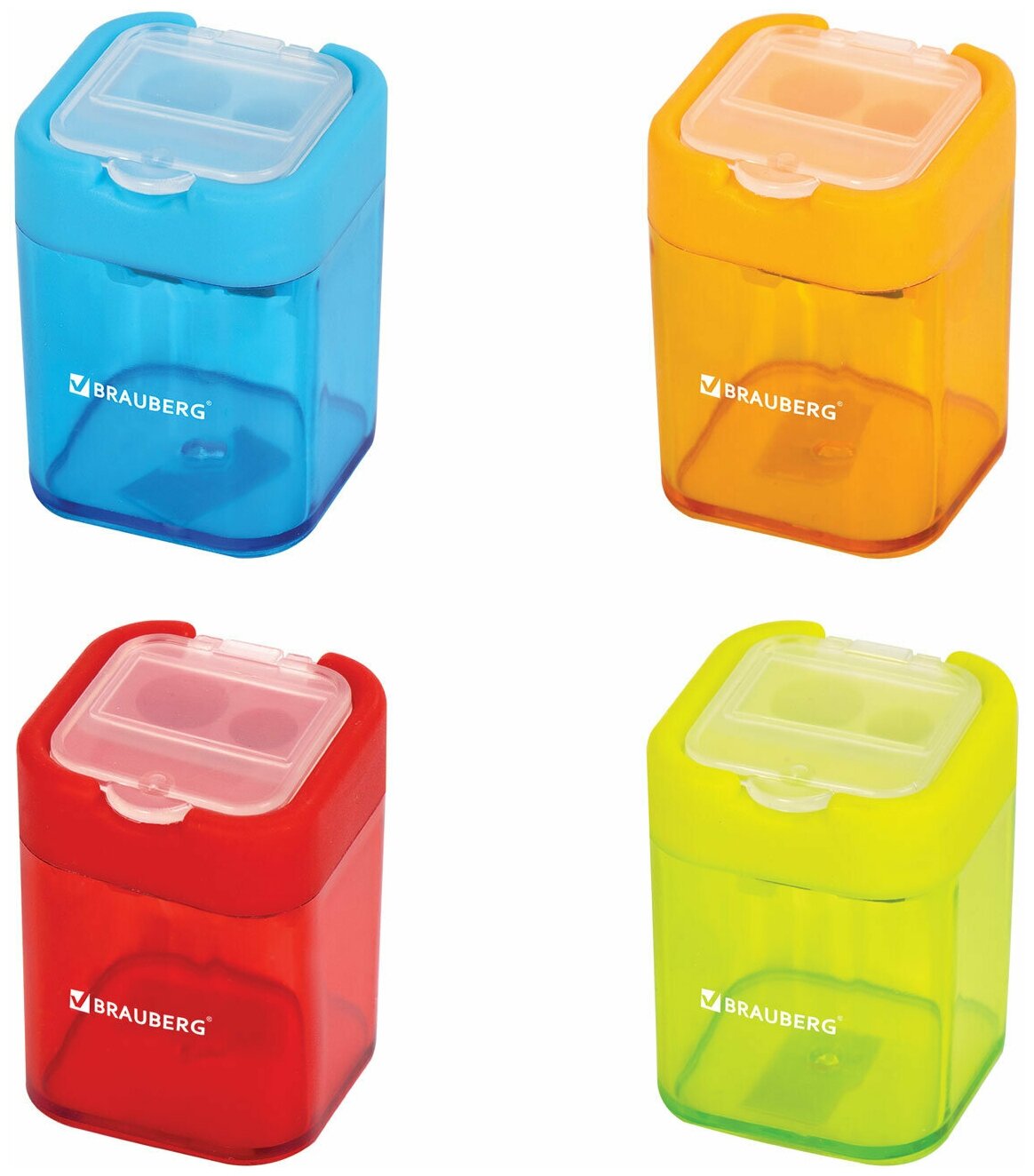 Отзывы на Точилка BRAUBERG PEAK с контейнером, пластиковая, прямоугольная, 2 отверстия, цвет ассорти, 226945