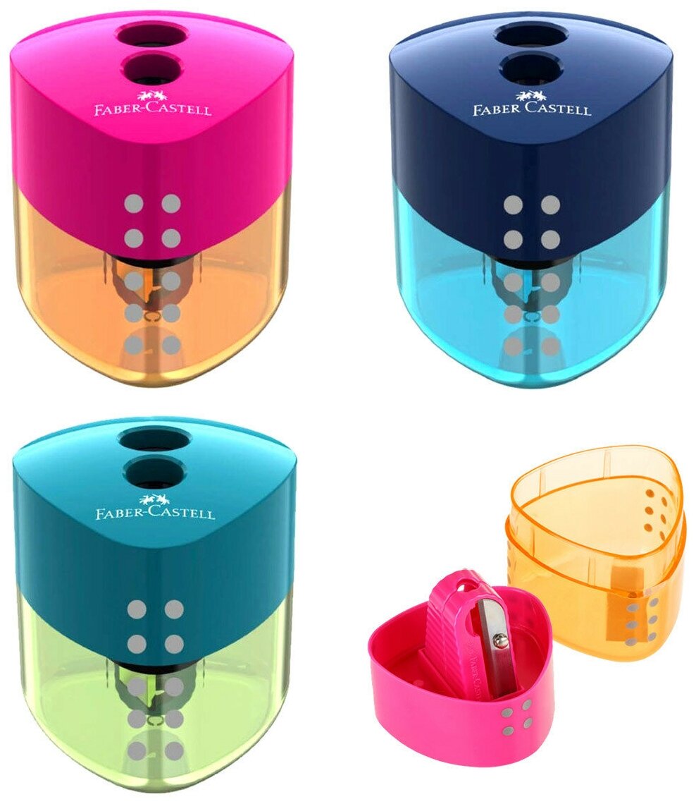 10 цен на Точилка Faber Castell Точилка пластиковая со "шторкой" Faber-Castell "Grip Auto" 2 отверстия, контейнер, ассорти (синий, розовый или голубой)
