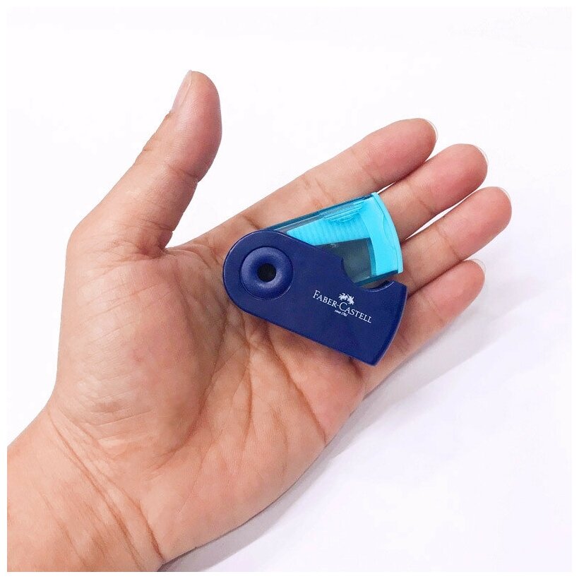 10 цен на Точилка Faber Castell Точилка пластиковая Faber-Castell "Sleeve Mini" 1 отверстие, контейнер, ассорти (синий, розовый или голубой)