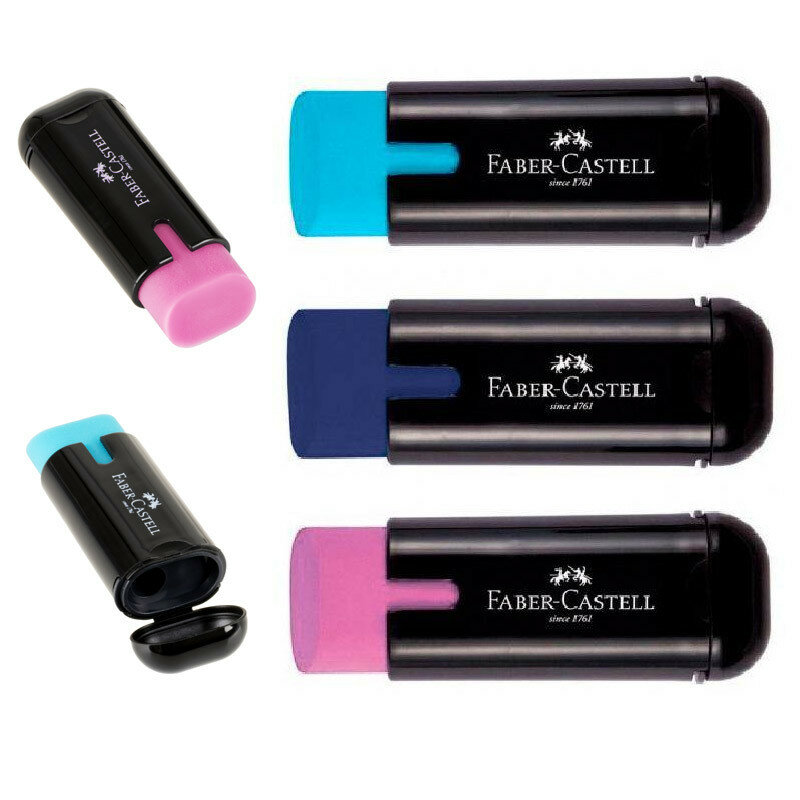Отзывы на Точилка Faber Castell Точилка пластиковая с ластиком Faber-Castell "Combi", 1 отверстие, контейнер, ассорти (синий, розовый или голубой)