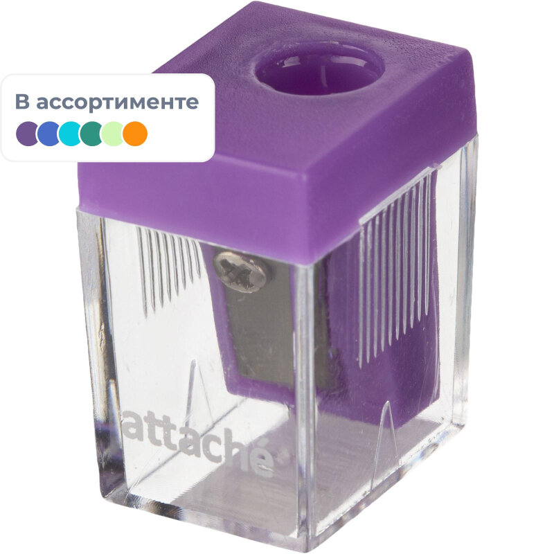 Точилка Attache Economy на 1 отв, прямоугольн, c прозр. контейнером, ассорти, 5 штук информация: