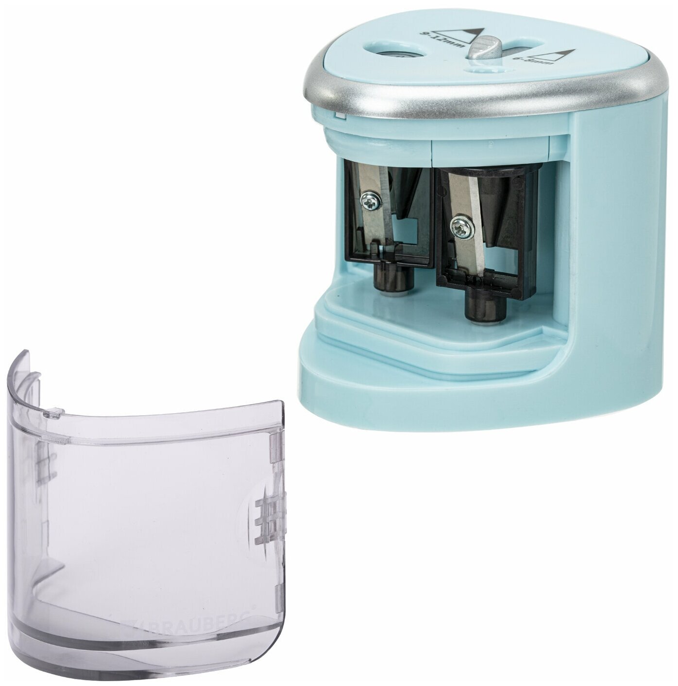 10 цен на Точилка электрическая BRAUBERG DUAL (для 2 диаметров карандашей!), 4 батарейки АА, голубая, 270578 - 1 шт.