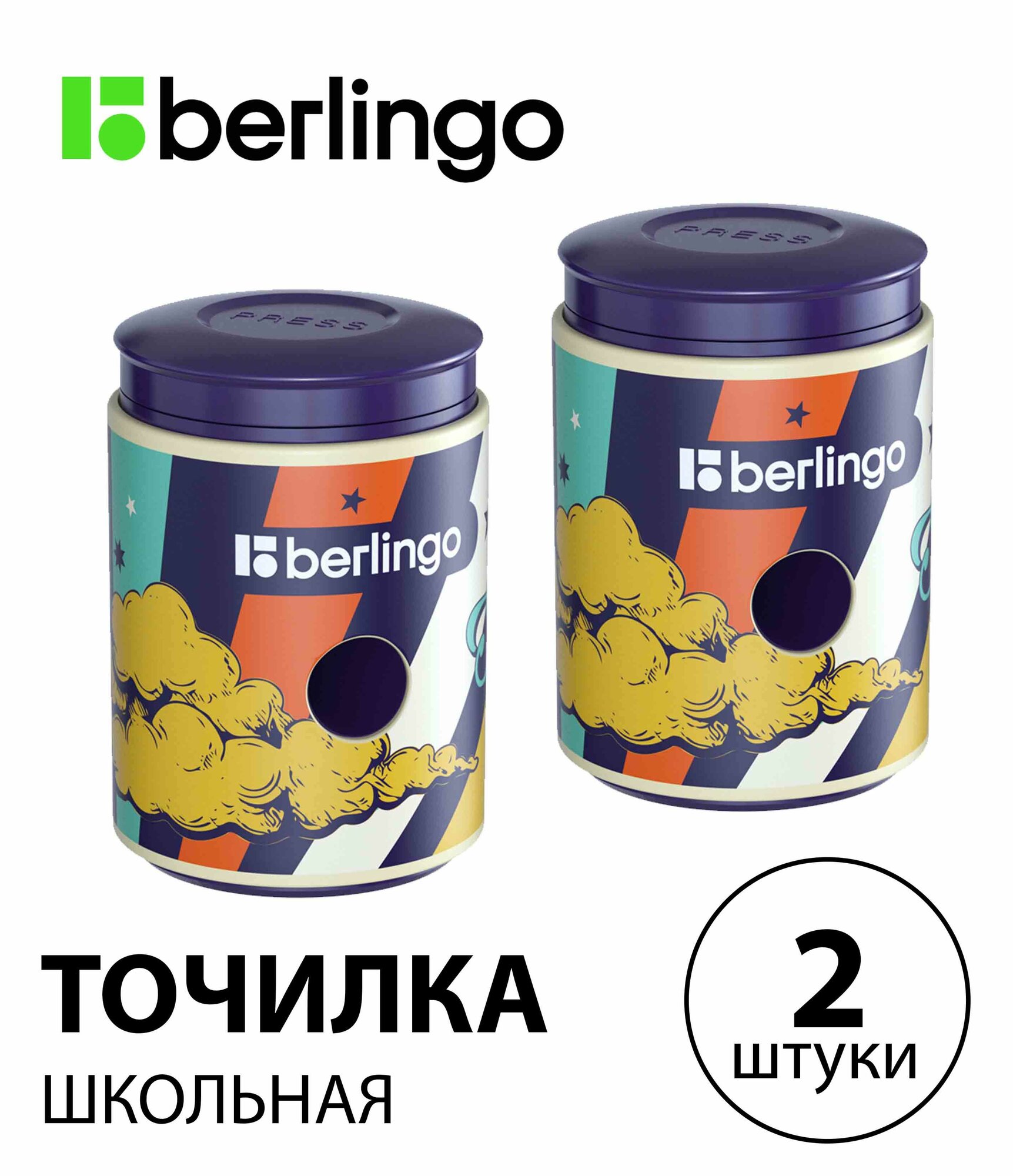 Набор 2 шт. - Точилка пластиковая Berlingo "Groovy", с контейнером, 1 отверстие BBp_15S15 информация: