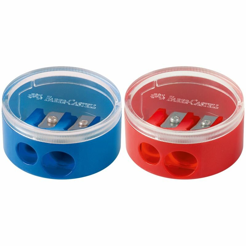 Набор 3 шт. - Точилка пластиковая Faber-Castell 2 отверстия, с контейнером, красная / синяя 185418 информация: