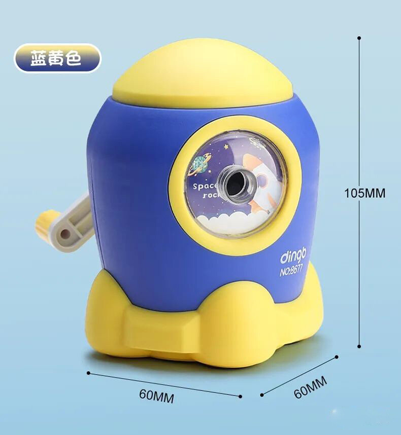 Точилка для карандашей "Ручная дрель для школьников", сине-желтая информация: