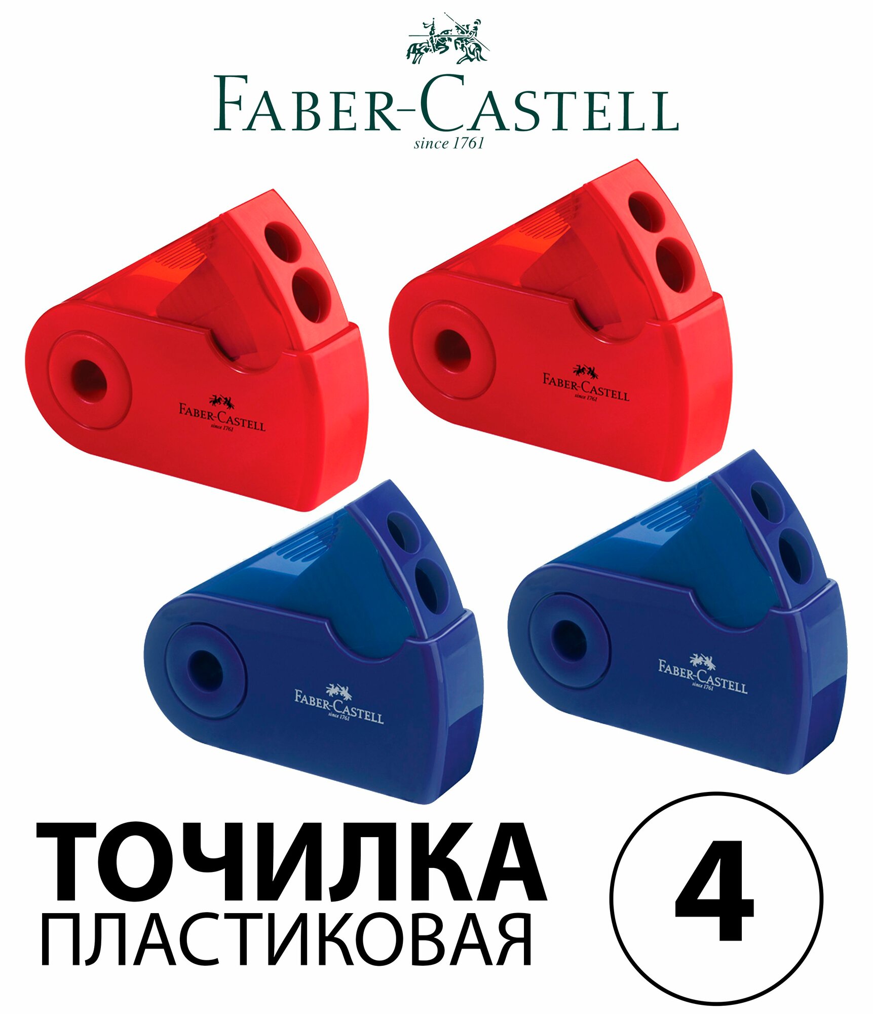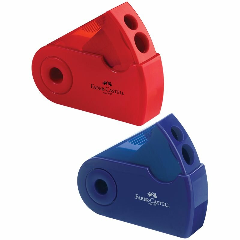 10 цен на Набор 4 шт. - Точилка пластиковая Faber-Castell "Sleeve" 2 отверстия, с контейнером, красная / синяя 182701