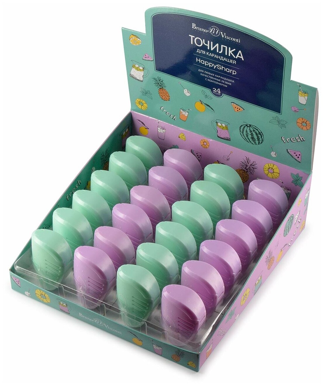 Точилка Bruno Visconti, (37 х 55 х 22 мм), "HAPPYSHARP" мятный, нежно-сиреневый, Арт. 35-0012, цвет в ассортименте Цена за 1 шт. информация: