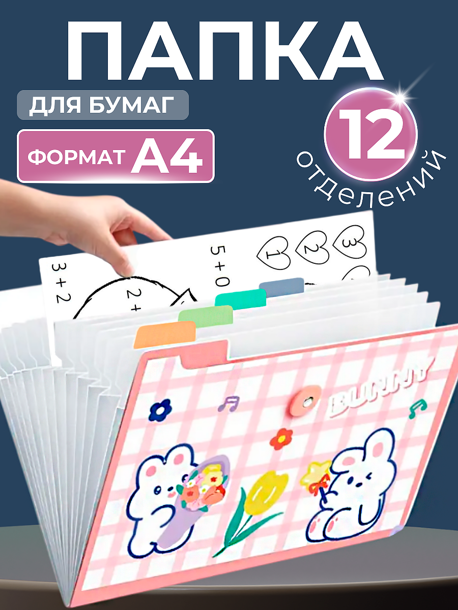 10 цен на Папка органайзер CANBI для бумаг и рисунков а4, 12 отделений, розовый