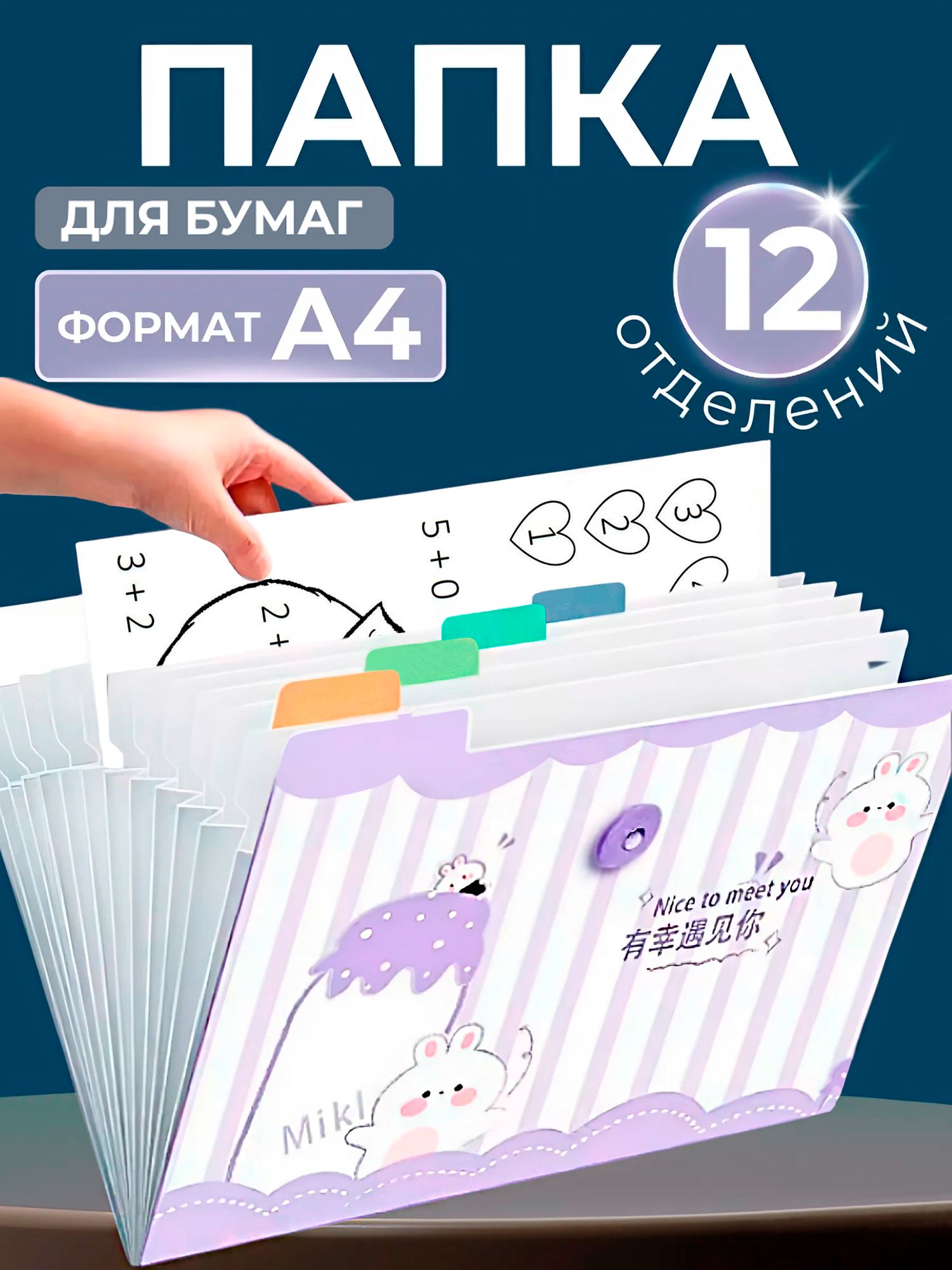 Папка органайзер CANBI для бумаг и рисунков а4, 12 отделений, сиреневый информация: