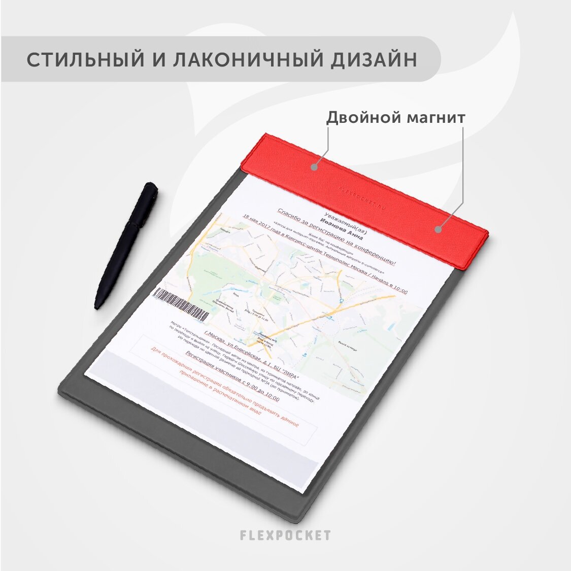 Папка планшет Flexpocket c магнитным зажимом для документов А4, цвет красный информация: