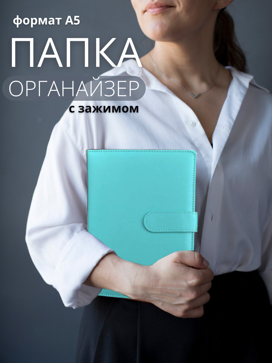 Папка для офисных бумаг с магнитной застежкой, формат А5, бирюзовая информация: