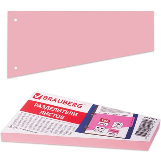 10 цен на Разделители листов Brauberg (трапеция 230х120х60 мм) картонные, комплект 100 штук, розовые,
