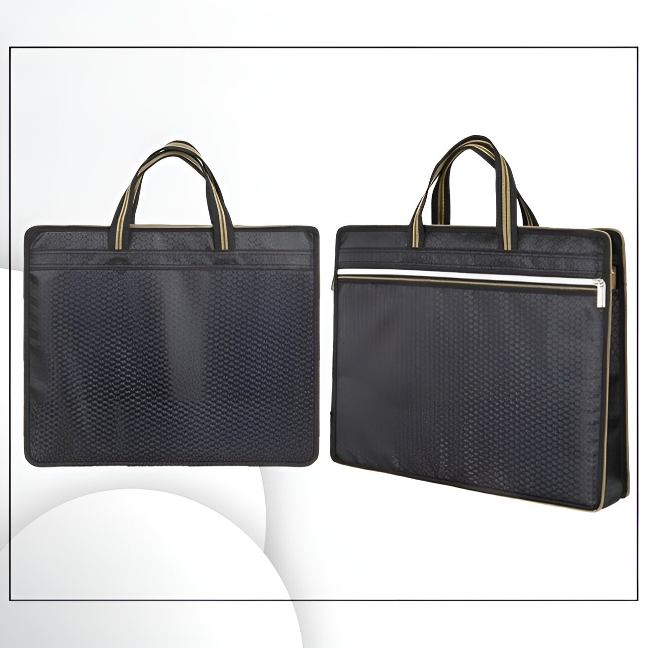 Папка-портфель на молнии для документов "А4" "B4" с ручками 380*300*80 черная информация: