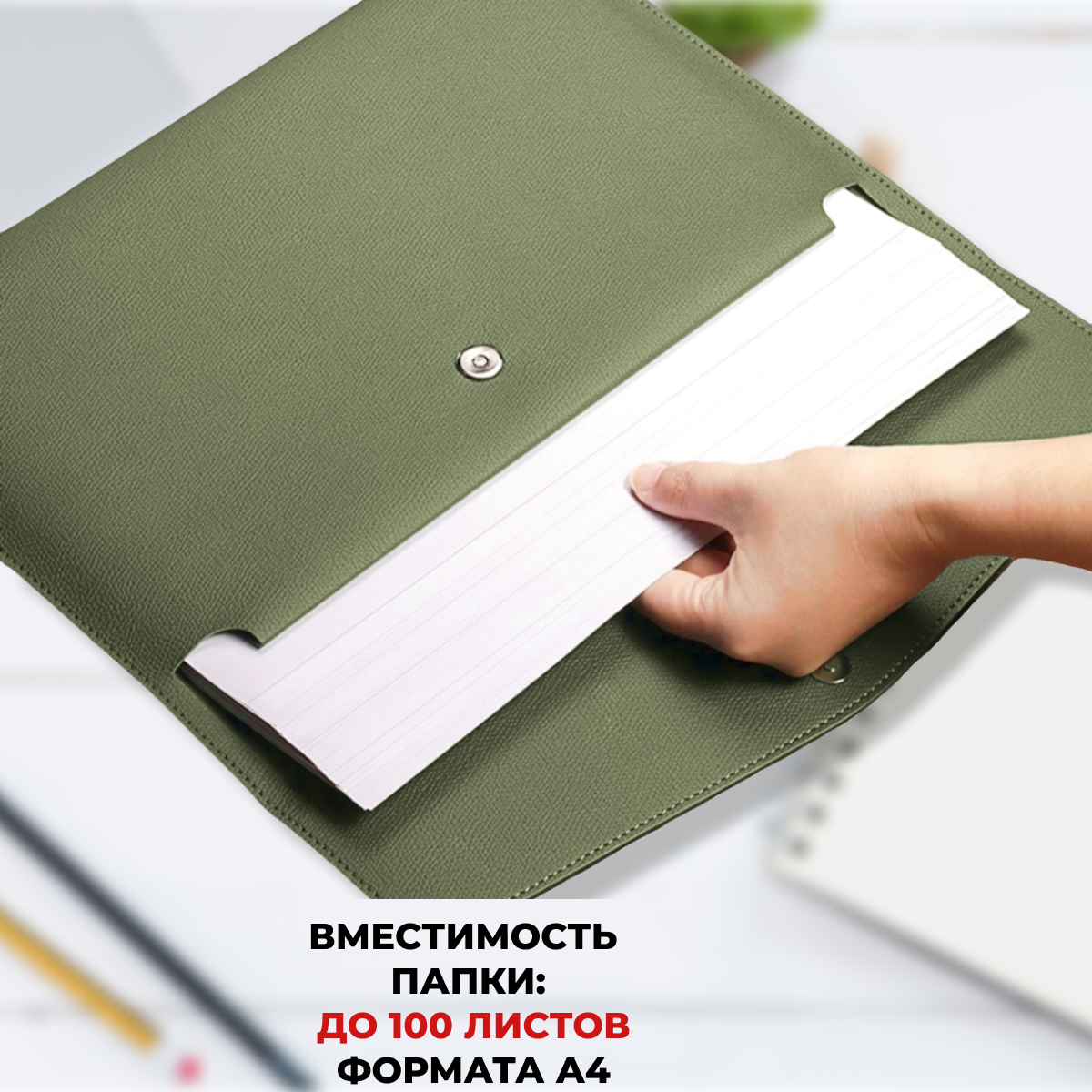 Отзывы на Папка для документов А4 из экокожи, на магнитной кнопке, оливковая
