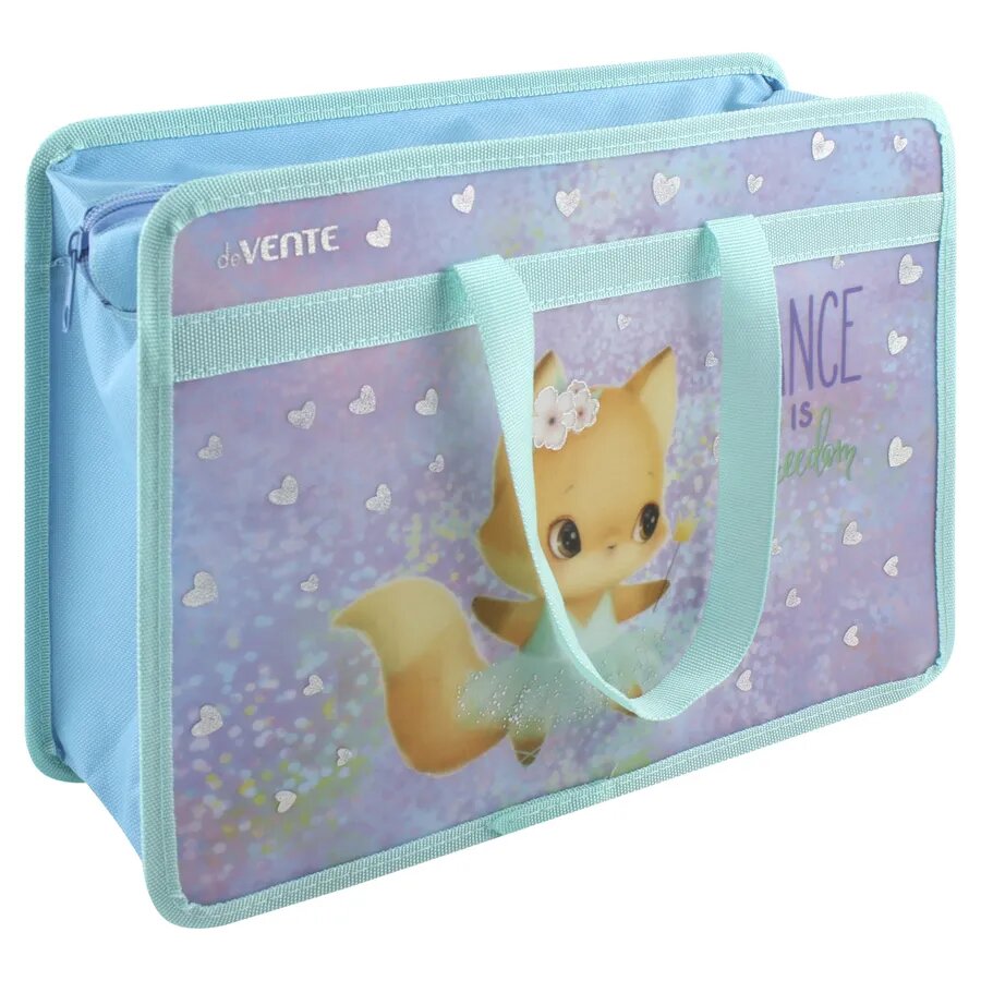 Папка с ручками "Dance Fox", А4, для тетрадей и изо, на молнии, пластик, бирюзовая информация: