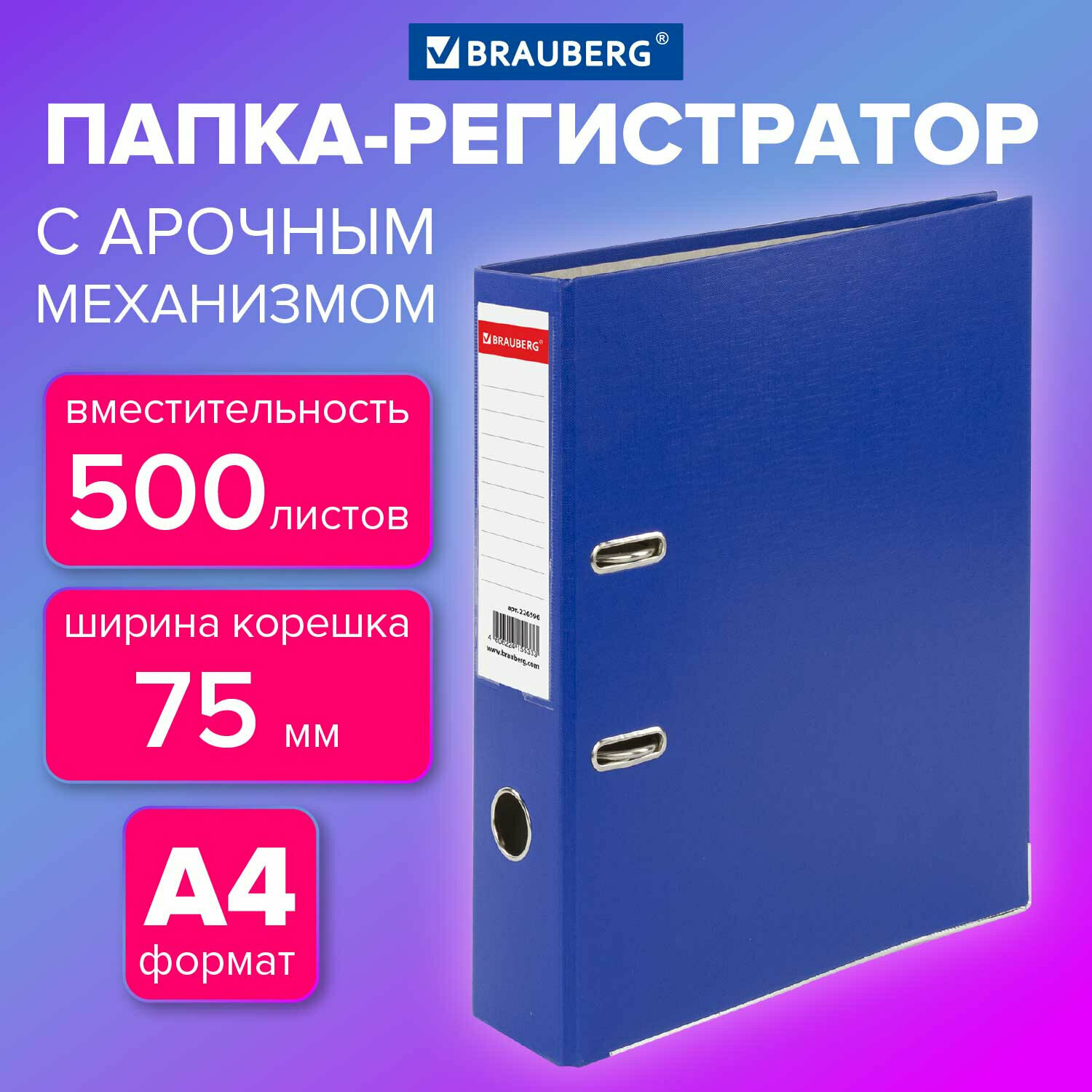 Папка-регистратор, покрытие пластик, 75 мм, прочная, с уголком, BRAUBERG, синяя, 4 шт