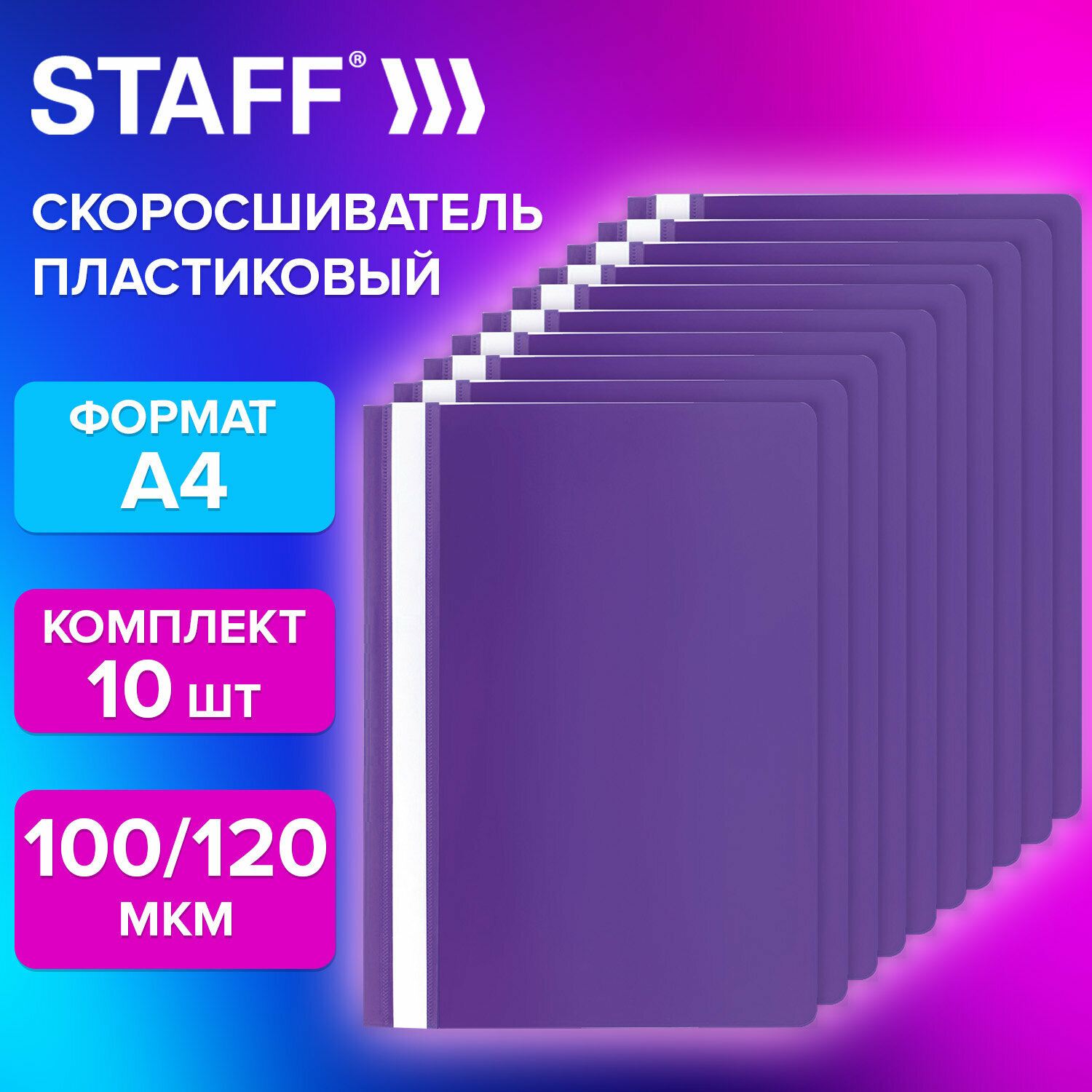 Скоросшиватель пластиковый STAFF, А4, 100/120 мкм, фиолетовый, 229237