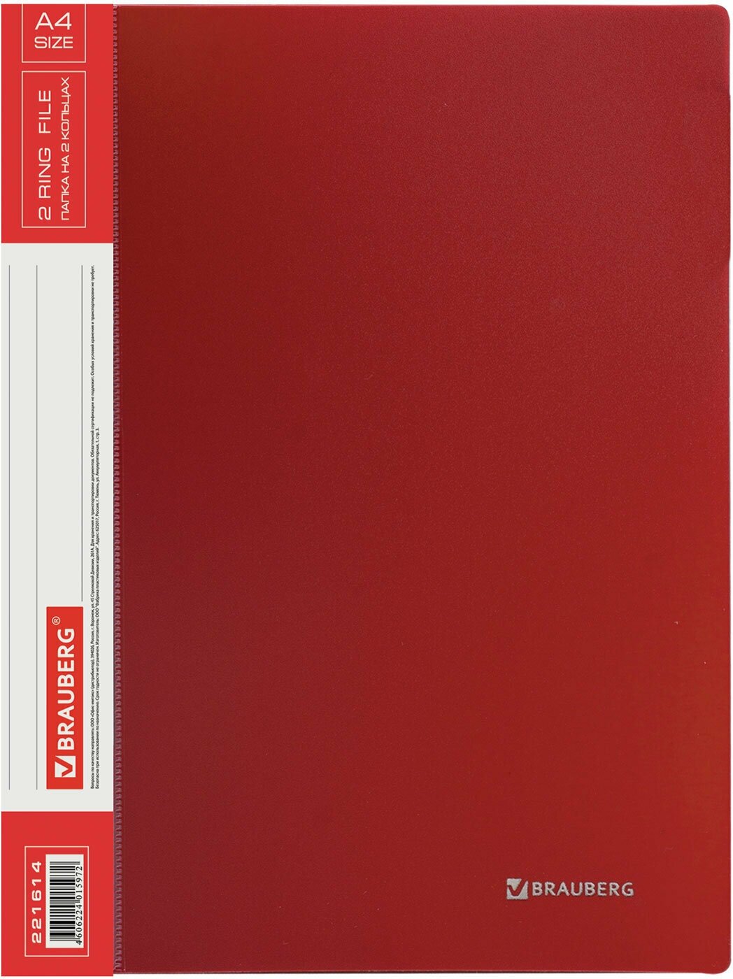 Папка для документов и бумаг А4 на кольцах до 170 листов канцелярская офисная, 25мм, красная, 0,8мм, Brauberg Стандарт, 221614 информация: