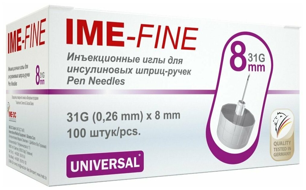 Иглы Ime-dc универсальные для шприц-ручек IME-FINE 31G x 8мм №100 информация: