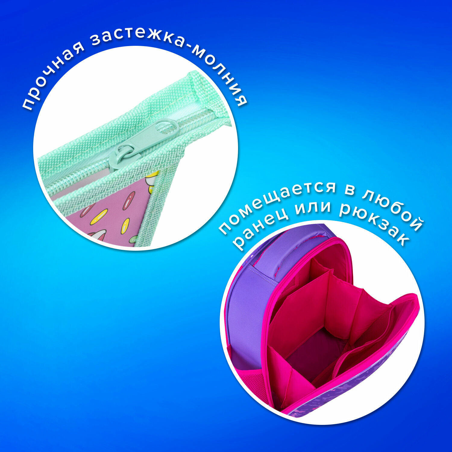 Папка для тетрадей на молнии Пифагор А5, 1 отделение, пластик, Happy Unicorn 499 ₽