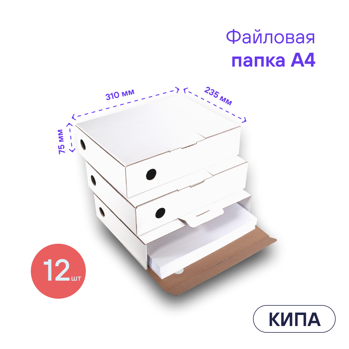 10 цен на Архивная папка для документов и бумаги кипа с замками, белый цвет, 32х24х8 см, гофрокартон, 12 шт в упаковке + наклейки