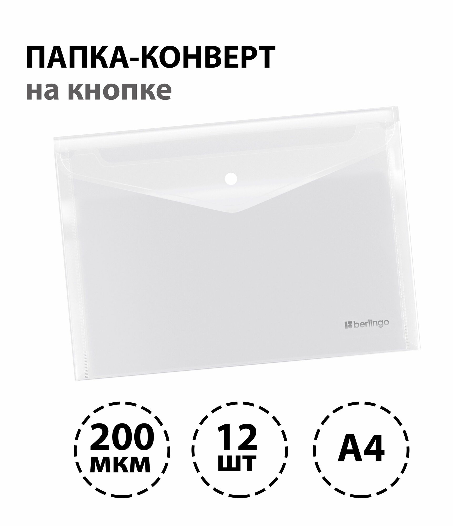 Набор 12 шт. - Папка-конверт на кнопке Berlingo "No Secret", А4, 200 мкм, вертикальная, прозрачная 984 ₽