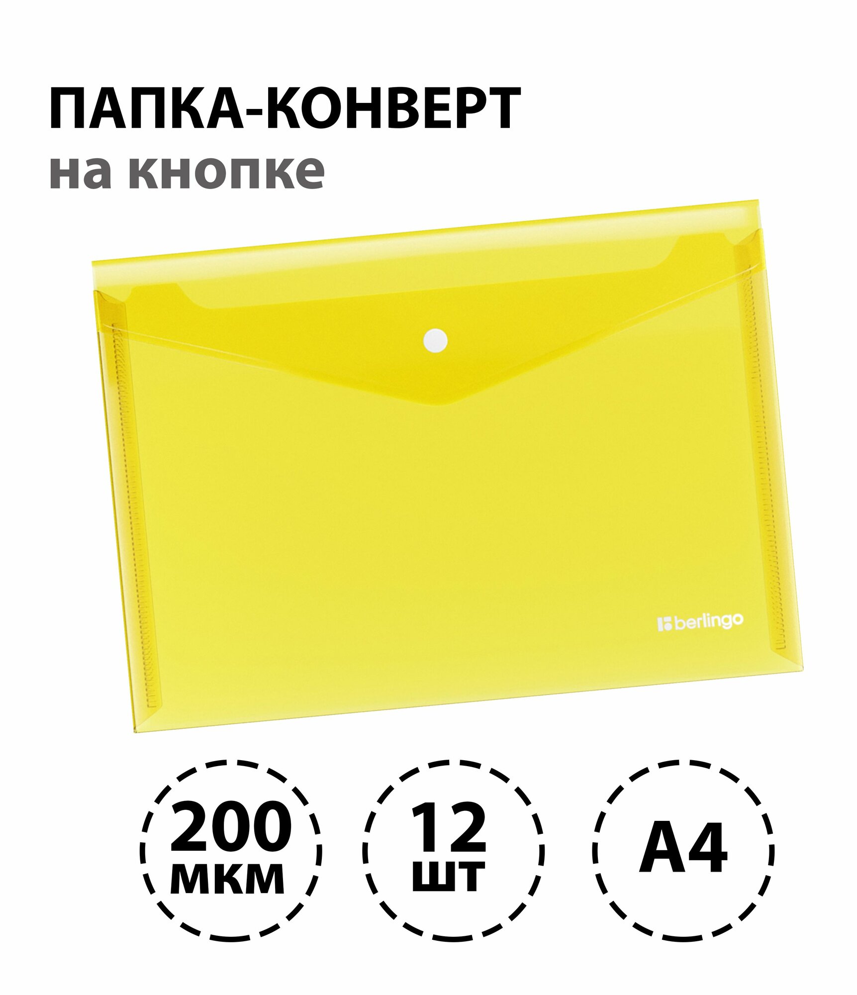 Набор 12 шт. - Папка-конверт на кнопке Berlingo "No Secret", А4, 200 мкм, желтая информация:
