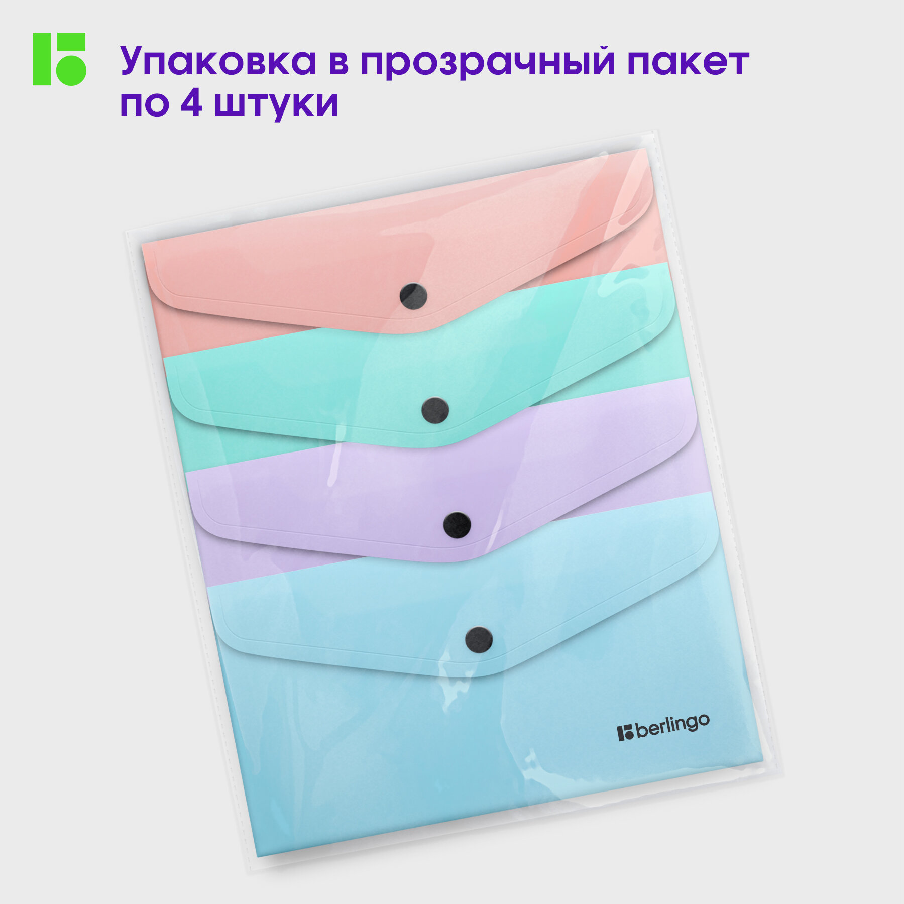 Папка-конверт на кнопке Berlingo "Instinct" C6, 200мкм, ассорти информация: