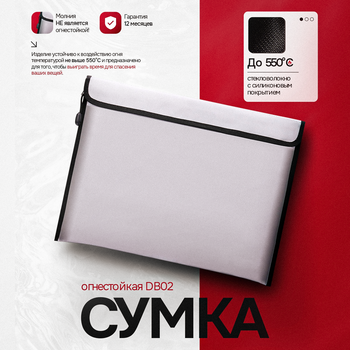Сумка огнестойкая SAFEBURG DB02 GRAY для документов и ценных вещей, папка влагостойкая информация: