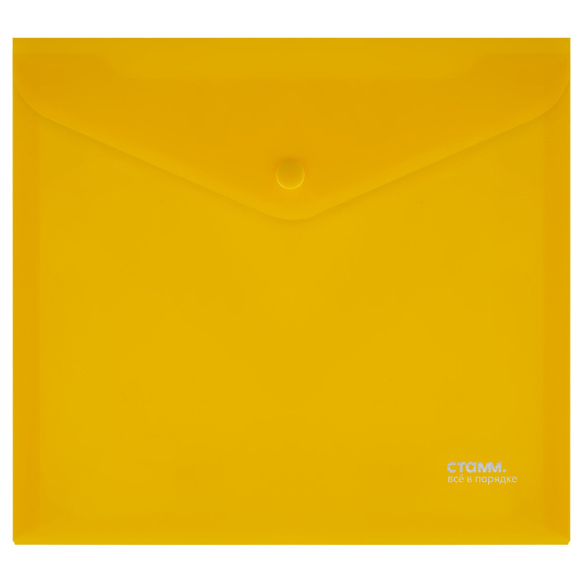 Отзывы на Папка-конверт на кнопке СТАММ А5+, 180мкм, пластик, прозрачная, желтая, 10 штук