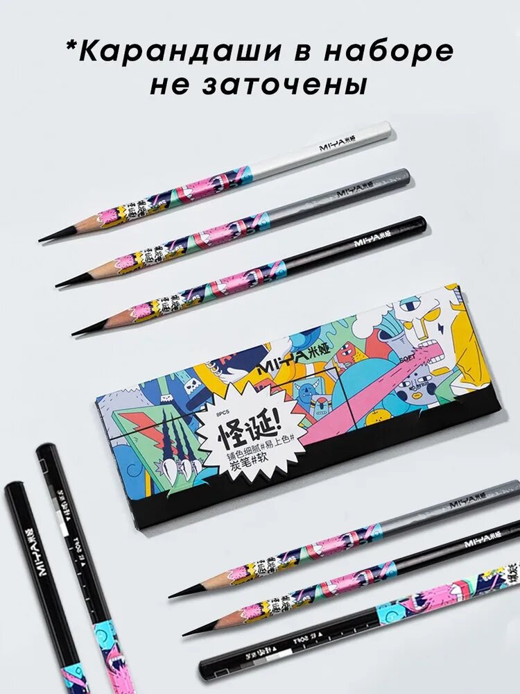 10 цен на Угольные карандаши мягкие черные HIMI MIYA, Уголь для рисования Набор 8 штук FC. QB. TB.050