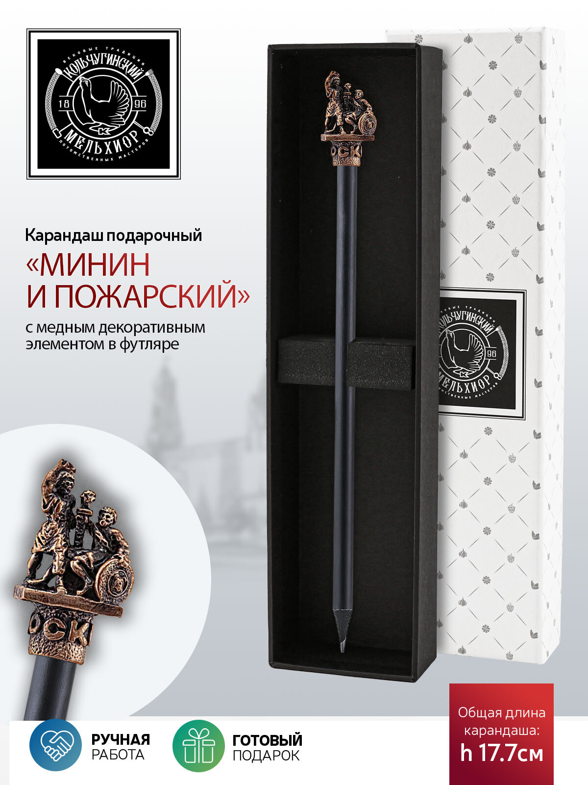 Карандаш чернографитный Минин и Пожарский медный с чернением в футляре информация: