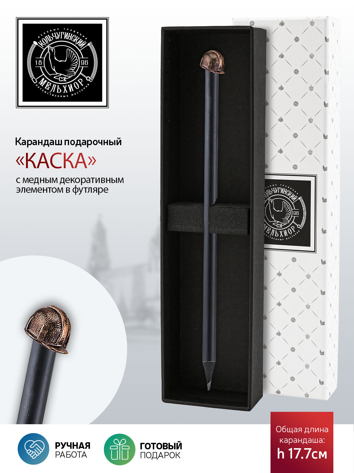 Карандаш чернографитный Индустриальный Каска медный с чернением в футляре информация: