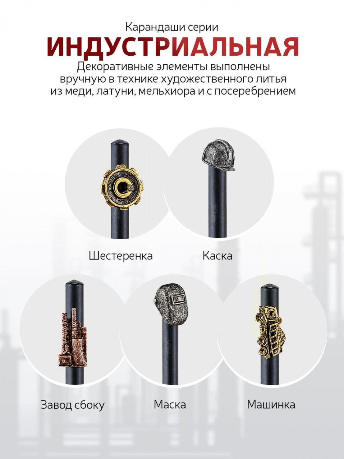 10 цен на Карандаш чернографитный "Индустриальный Завод сбоку" мельхиоровый полированный