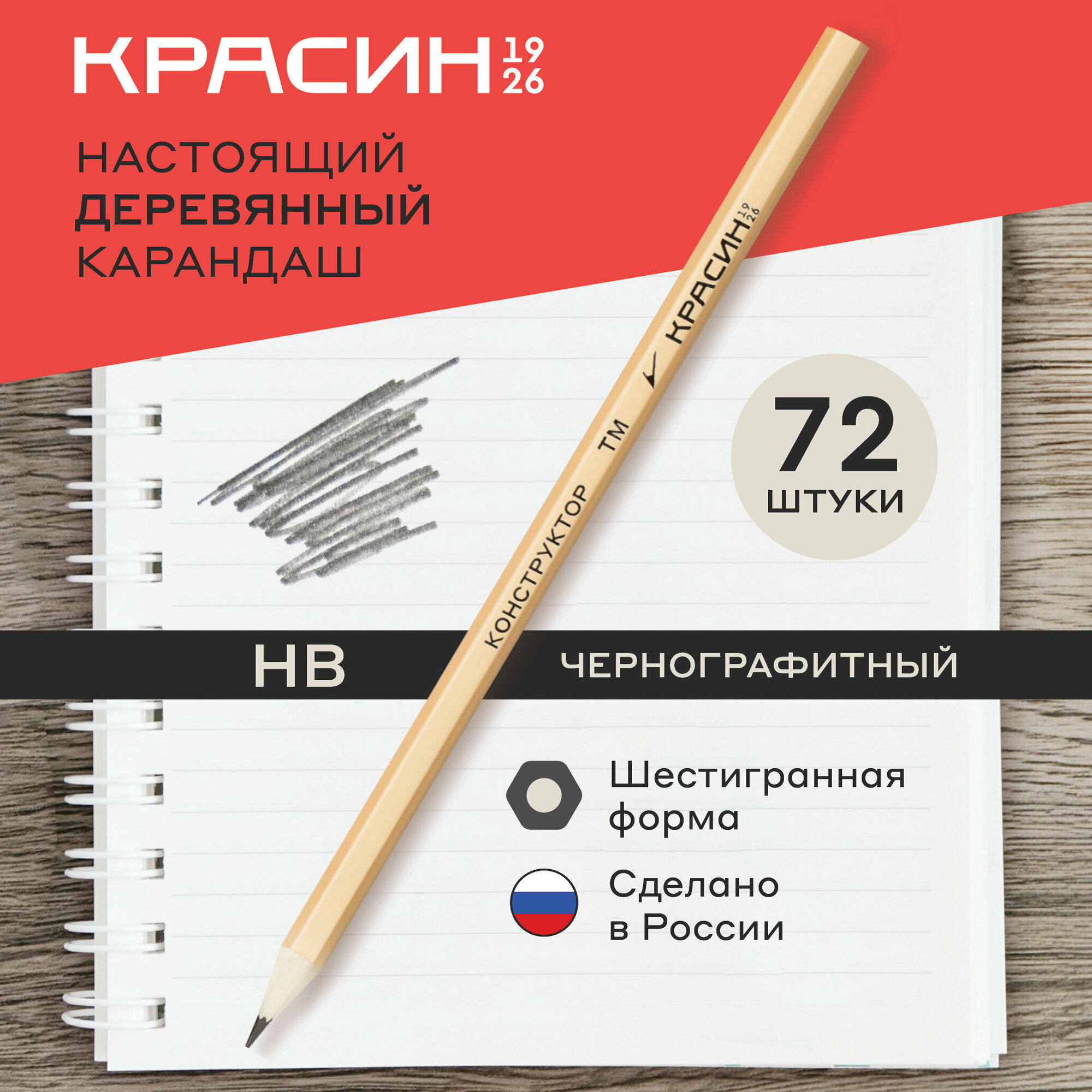 Карандаш простой для школы HB / Набор простых карандашей для рисования и офиса из 72 штук Красин "Конструктор" / чернографитные карандаши информация: