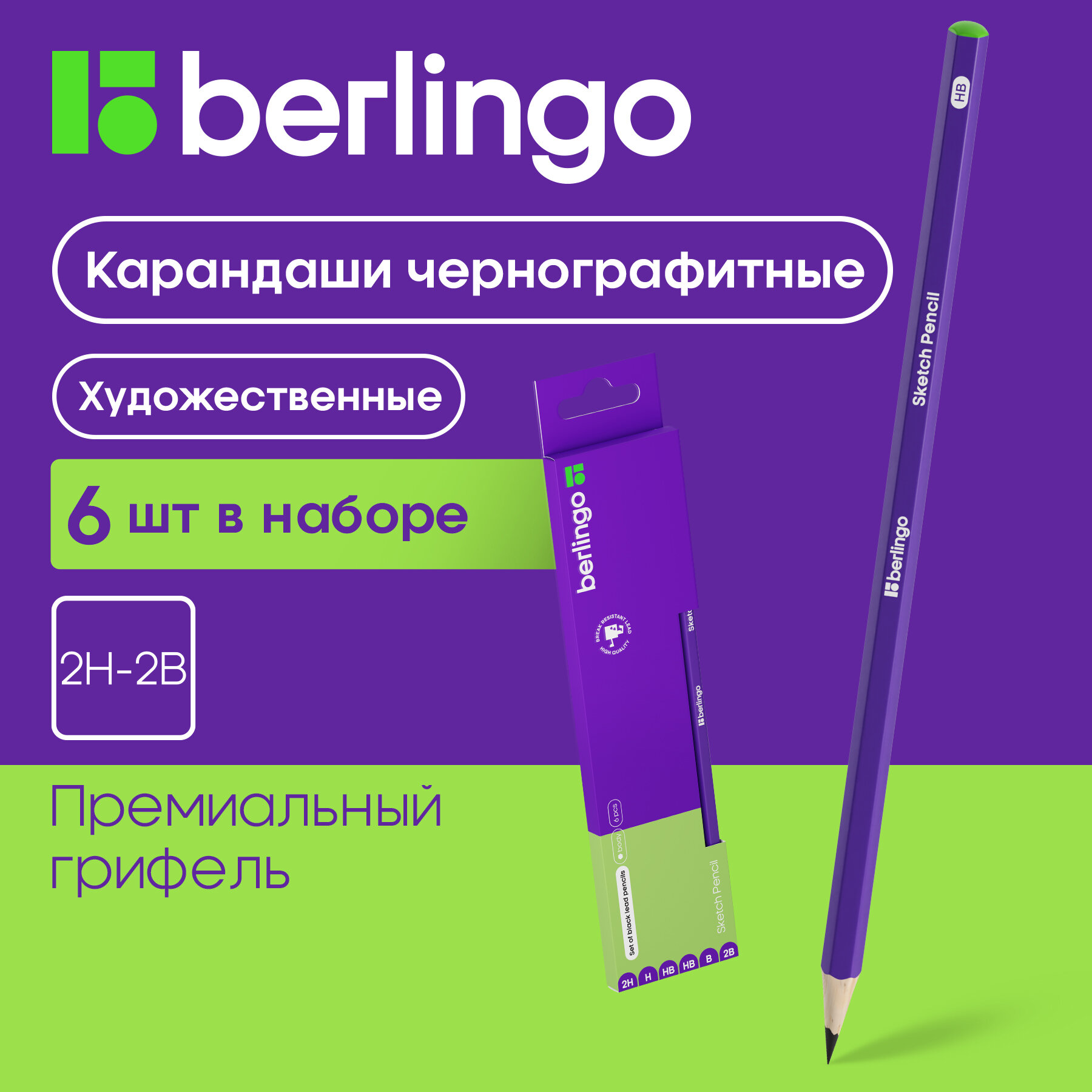Набор карандашей ч/г Berlingo "Sketch Pencil" 6шт, 2H-2B, заточен, картон. упаковка, европодвес информация: